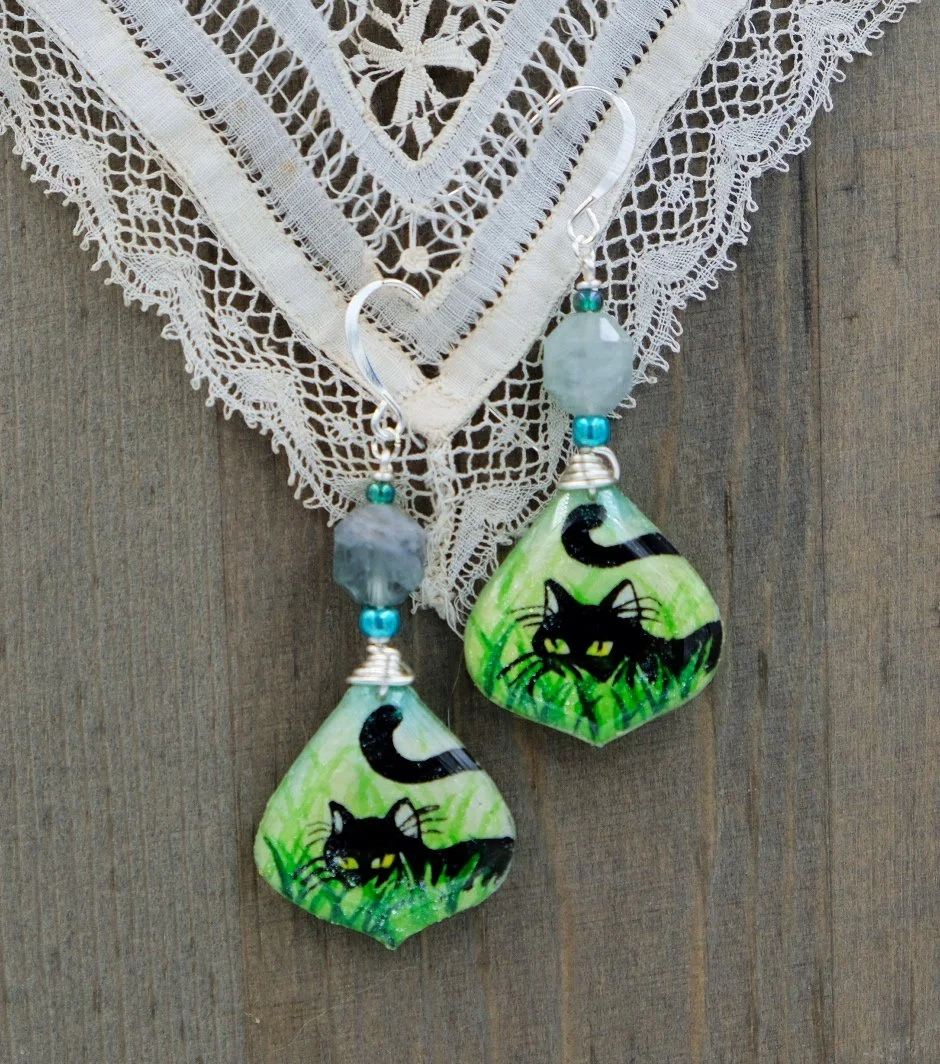 As a cat mom of six adorable fuzz balls, I get inspiration from their daily antics into my art. From sneaky kitties in grass to pensive kitties staring at the moon.